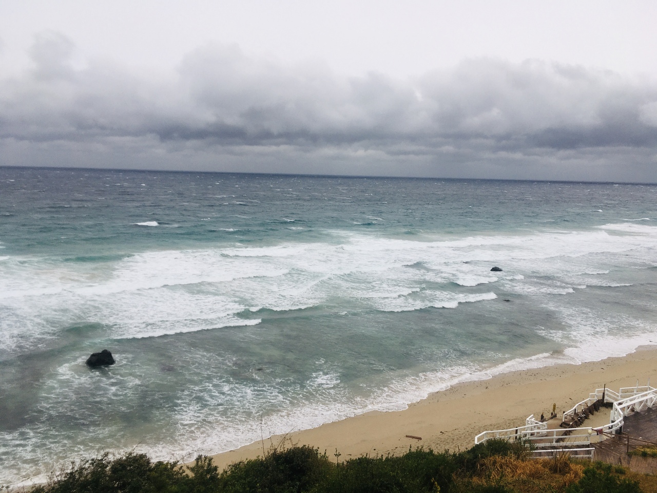 伊豆急「下田駅」からバスで20分ほどです。伊豆三大美浜の一つとして知られる白い砂と透明度の高い海が魅力の海岸です。今回は風が強く浜に降りることは諦めましたが、800mほど続く美しい海岸線は見事でした。夏シーズンには大勢の海水浴客で賑わう様子を想像していました。