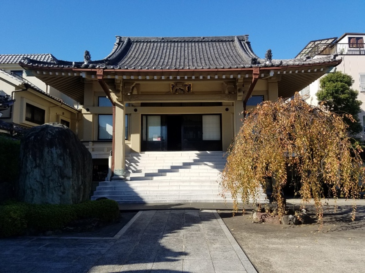 潮江院から歩いていきました。本堂と向き合うと向かって右の柳みたいな木が目を引きます。どうやらしだれ梅だそうで秋なので花もなく葉も茶色くなっていますがなんとも言えない風情がありますね。向かって左には何かの碑でしょうか大きな岩があってインパクトがありました。