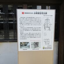 江戸時代から続く立派な建物です。今も現役の建物で、材木関係の仕事に用いられているようで、入口にステッカーが貼ってあるのが見えました。建物そばに桶川市教育委員会の説明板があり、住宅の構造がわかるようになっていました。