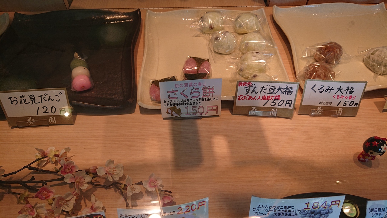4月上旬の、「岡崎のさくらまつり」開催機関中に訪問しました。ちょうど満開の桜を鑑賞した後でしたので、「さくら」つながりで、「さくら餅」を購入しました。桜葉、餅、こし餡のバランスが良く、また、こし餡の味が控え目だけど甘いという絶妙さで、おいしくいただけました。