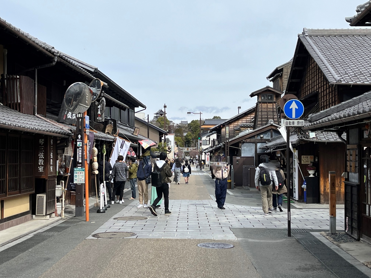 犬山城を正面に南北に真っ直ぐ伸びる通りが、犬山城下町のメインストリートです。古い町並みが残り、散策が楽しい通りでした。犬山駅側から歩くと正面に犬山城が見えてとても良い雰囲気です。