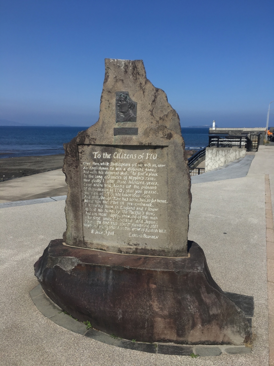 JR伊東駅から徒歩で15分ほどです。伊東の温泉街を流れる松川の河口脇に整備された三浦安針ことウィリアム・アダムスを記念する広場です。徳川家康の命を受けた安針はここ伊東で洋式帆船を日本で初めて建造しました。広場には安針の胸像と彼が建造した洋式帆船の彫刻、他に北原白秋の詩碑もあります。駐車場は無いのでお隣の「なぎさ公園」の有料駐車場を利用してください。