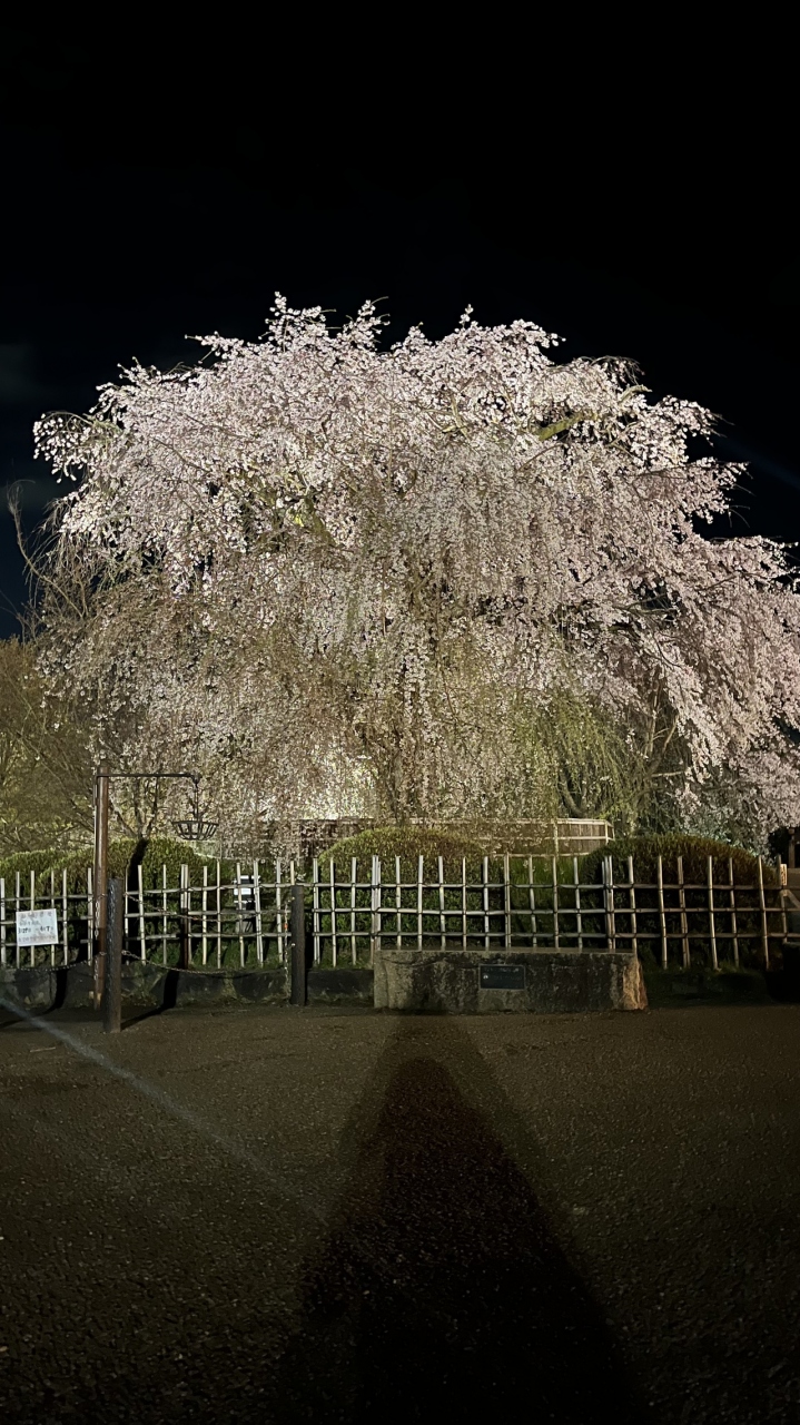 学生時代ぶりに桜の季節に円山公園に行けました。今年はコロナ禍の影響か、ライトアップが控えめでしたが、街灯のあかりで夜の桜も楽しめました。寒い日が続いていたので、夜は人が少なく、桜を独り占め出来ました。