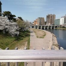 今年もこの季節がやって来ました。そう、この橋がもっとも映える桜の季節です。岡崎公園に花見に行く途中にちょっと寄ってみました。橋の南側の渡り口付近からは名前のとおり、桜・(岡崎)城・橋が見渡せる場所があります。ネーミングは公募により中学生の女の子の案が採用されたとのこと。それにしてもぴったりのいい名前だと思います。
