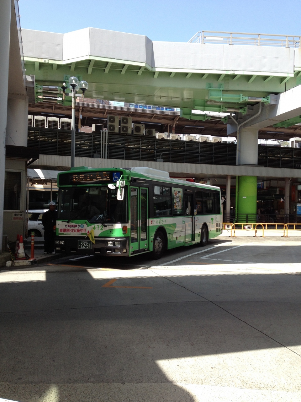 市民の間では「神戸市バス」とか市バスとだけ言うそうで、神戸市の市バス路線の他、阪急バスが運行している営業所、また西の垂水のほうまで行くと神姫バス、山陽バスと共同運行、業務委託している地区を入れると広大なネットワークになる市民の重要な足のようです。昔は車体がもっと濃い緑のような気がしましたが、明るい緑が印象的なバスになっていました。