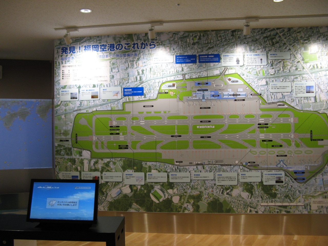 空港の国内線ターミナル展望デッキ出入口手前にあります。福岡空港の歴史などをパネルや写真を使って展示しているほか、航空機のタイヤや福岡空港に就航している飛行機の模型、国内で最初のボーディングブリッジなども展示しています。無料で自由に観れるので展望デッキに行くついでに観られることをお勧めします。
