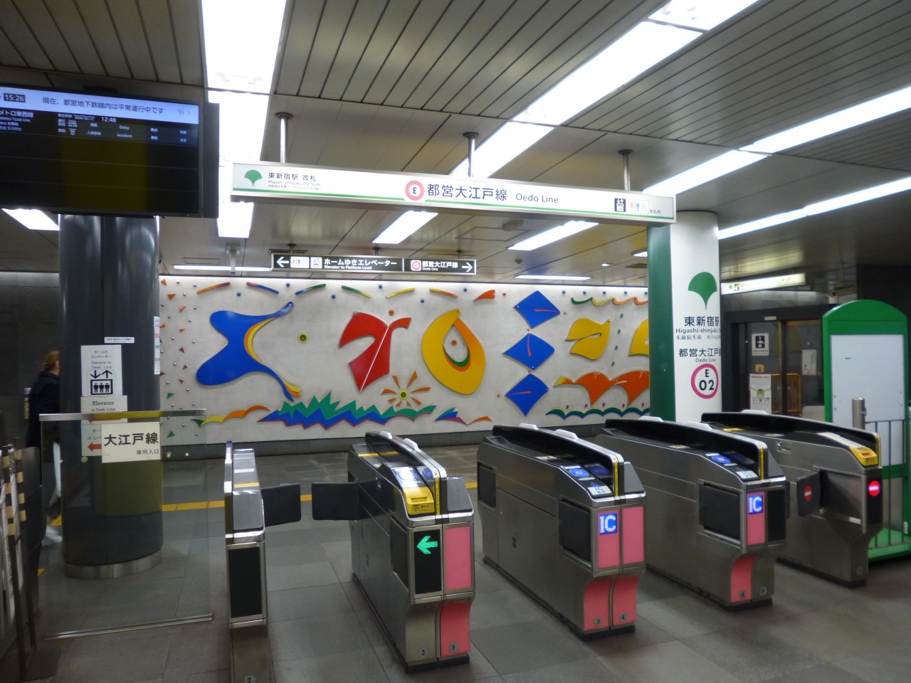 両国駅から東新宿駅まで大江戸線を利用しました。所要時間は20分ほどで混雑はなく、思ったよりも時間がかからず快適でした。東新宿駅は「新宿イーストサイドスクエア」という複合商業施設に直結しており便利です。改札のすぐ外にはモダンアートの姿もあり、お洒落心を感じる駅でした。
