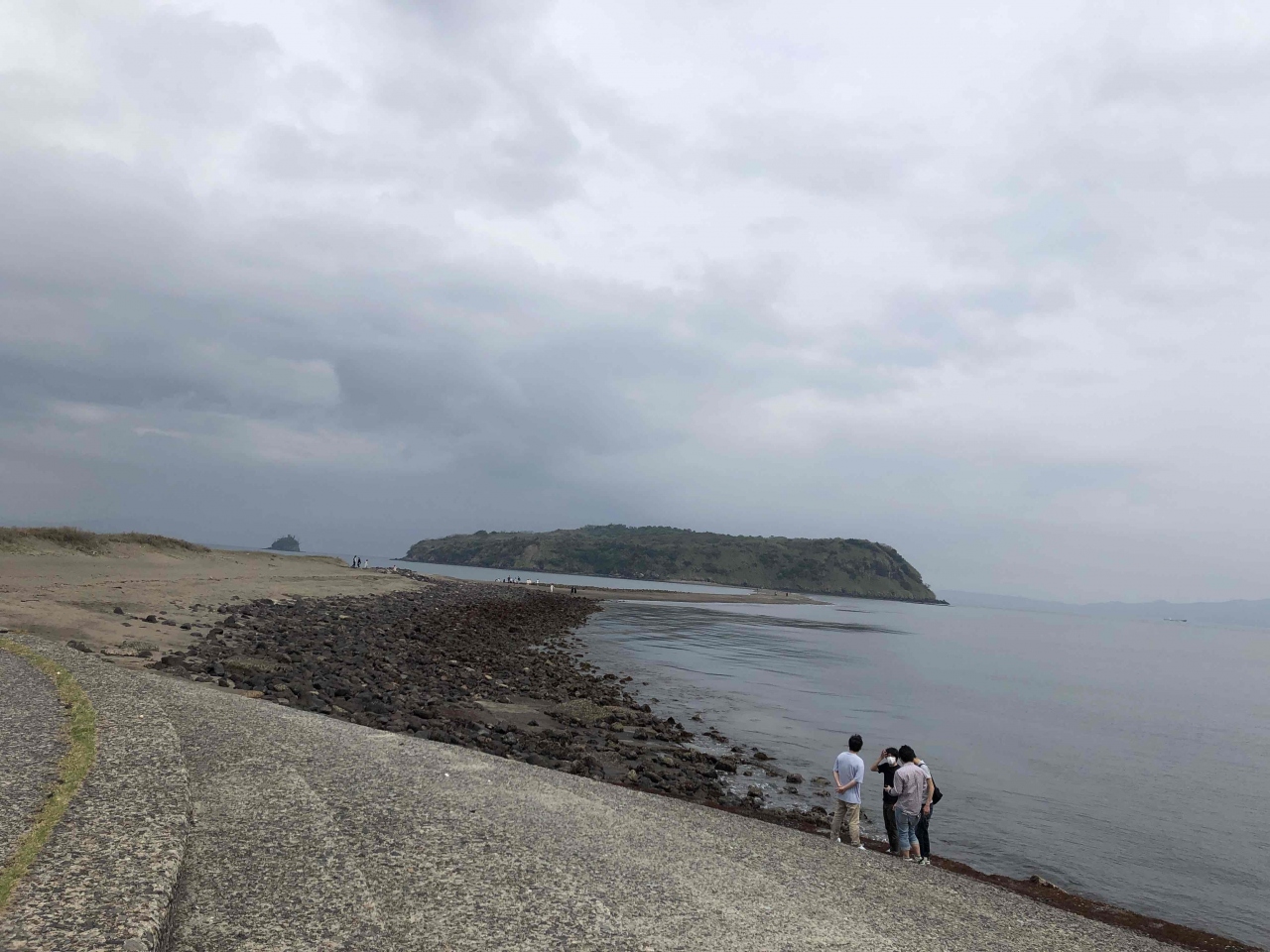 休暇村指宿の先にあるキャンプ場に無料の駐車場があります。そこから海岸の方へあるけば目の前に島がみえます。ちりりんロードを歩くならサイトで砂州出現予測を見てから行くのがよいでしょう。モンサンミッシェルのように神秘的な体験ができます。