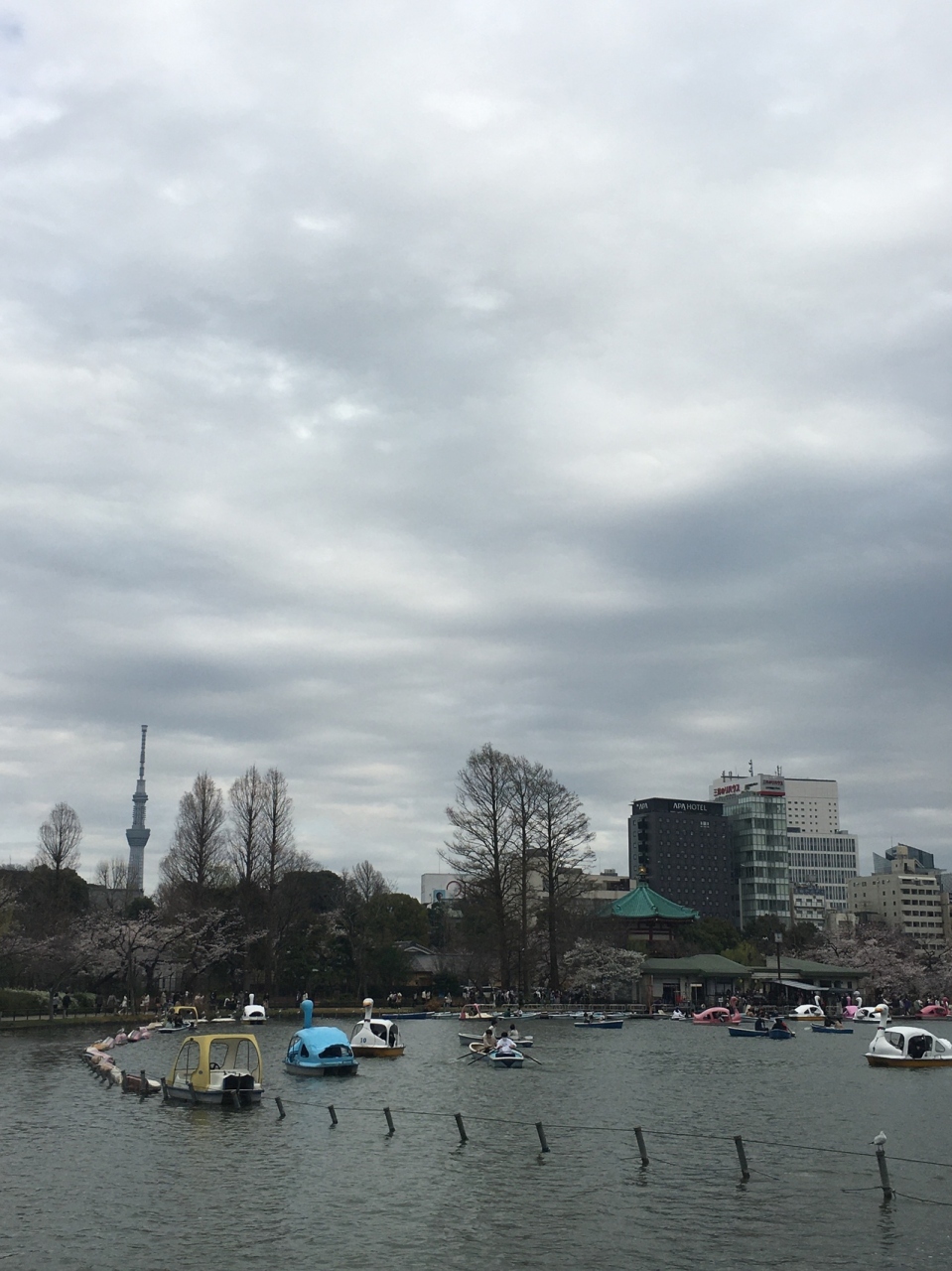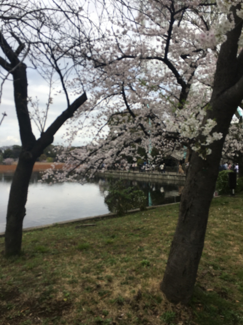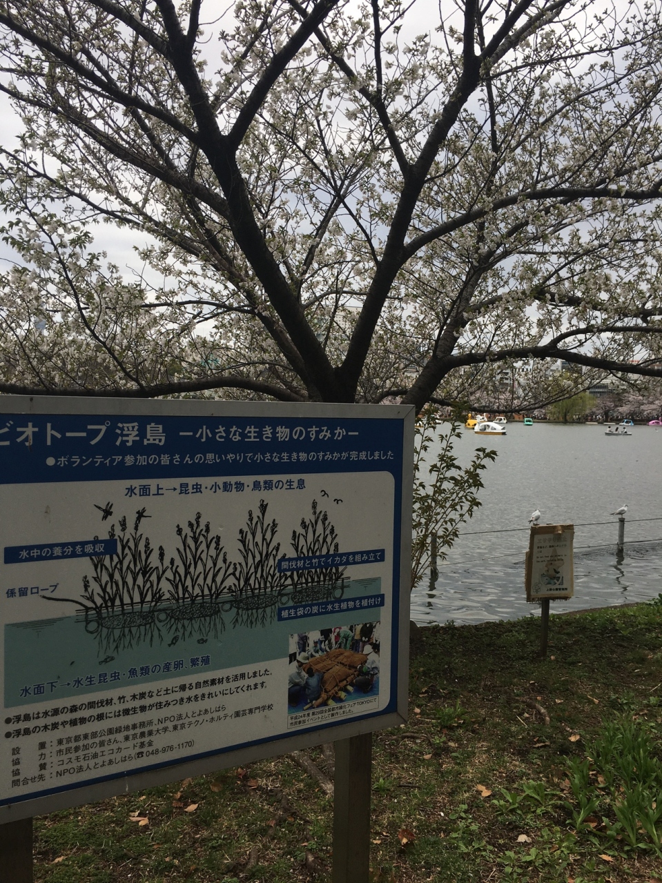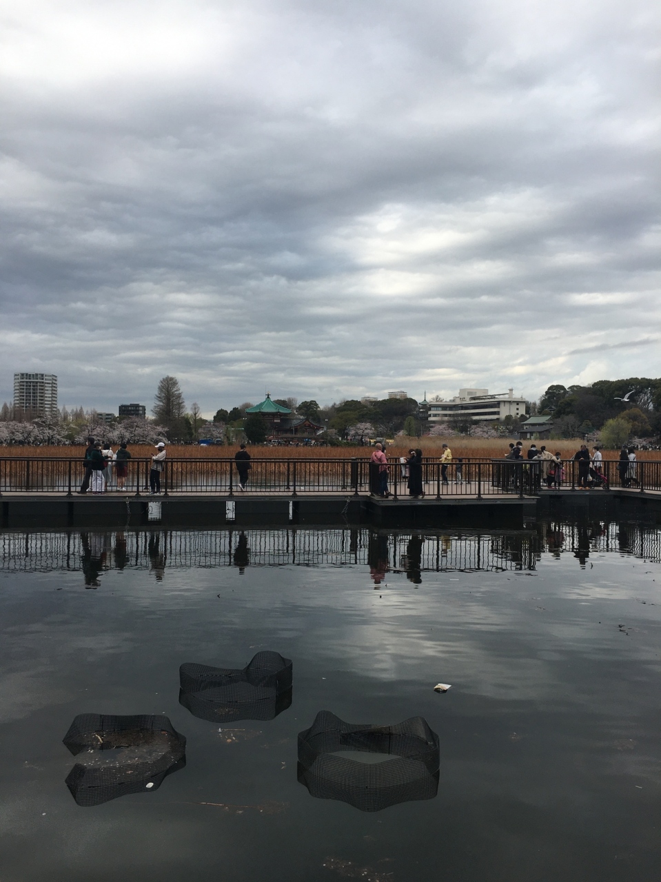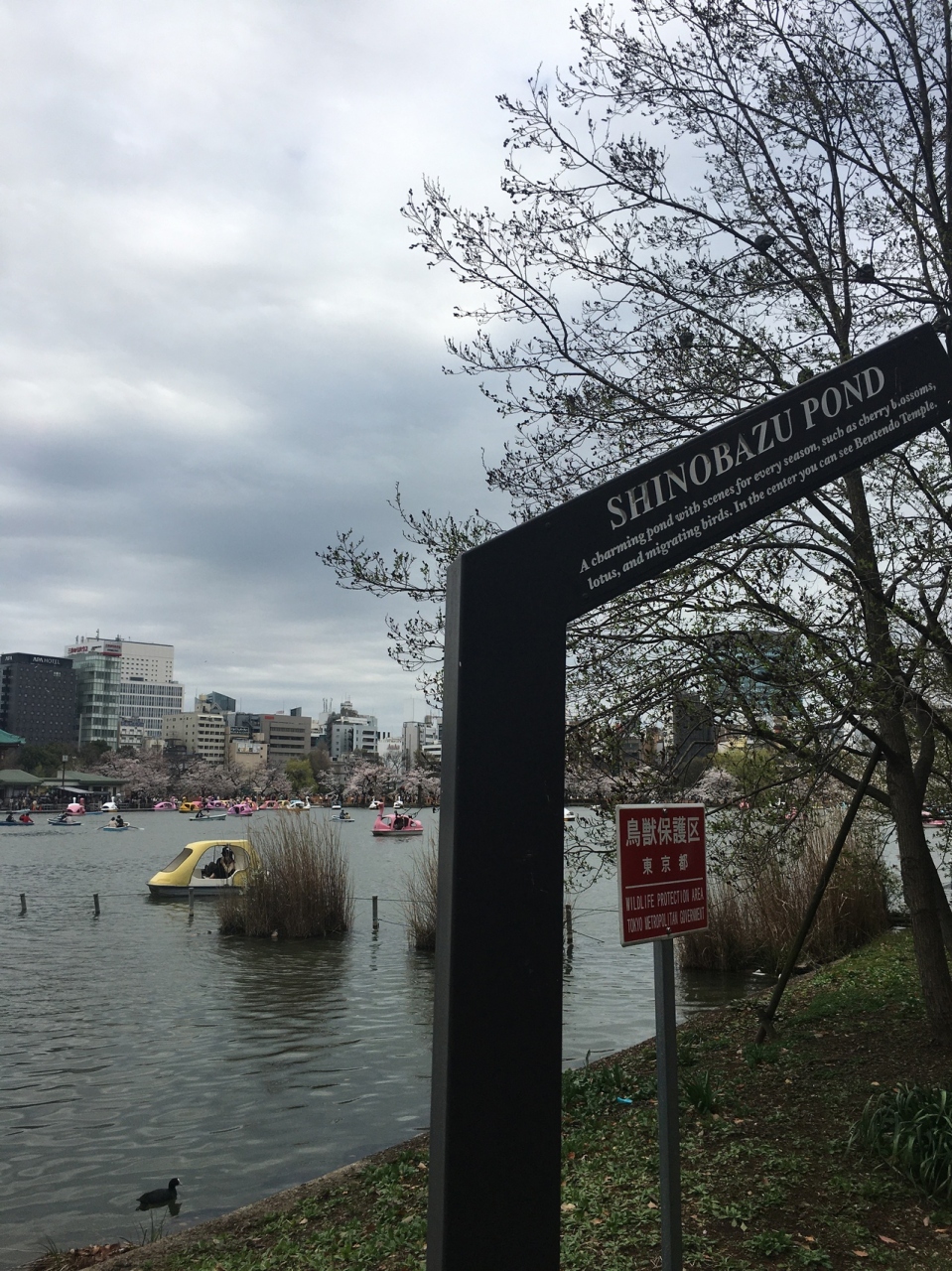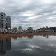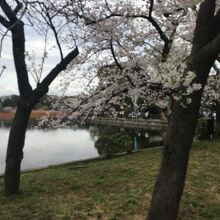 広い池で、池沿いは遊歩道になっていて桜並木があり、ほぼ満開だったためか人でごった返していました。池でボートを楽しんでいる人も多くいて、釣りは禁止ですが、鮒が遊歩道から見えました。一周すると20分以上はかかりそうでした。