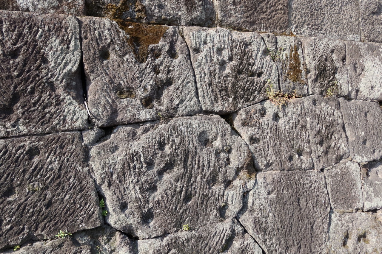 西郷隆盛が建てた私学校の石垣(石堀)から鶴丸城跡(鹿児島城)の御楼門ぐらいまで、石垣に刻まれた銃痕が残っており、当時の内線西南戦争の苛烈さを物語っておりました。(銃痕といえど一弾の跡が大きく、なんともインパクトがありました。)