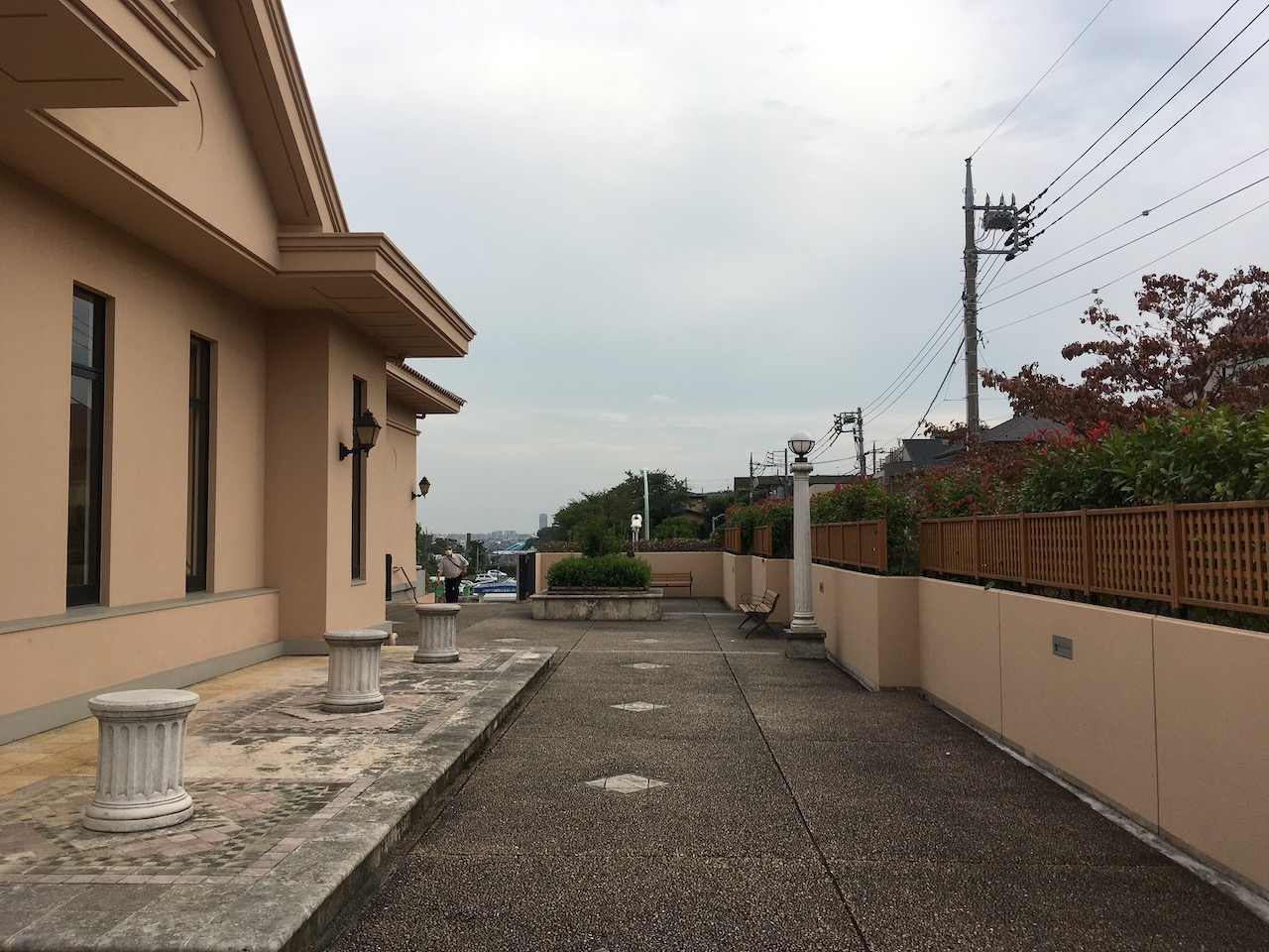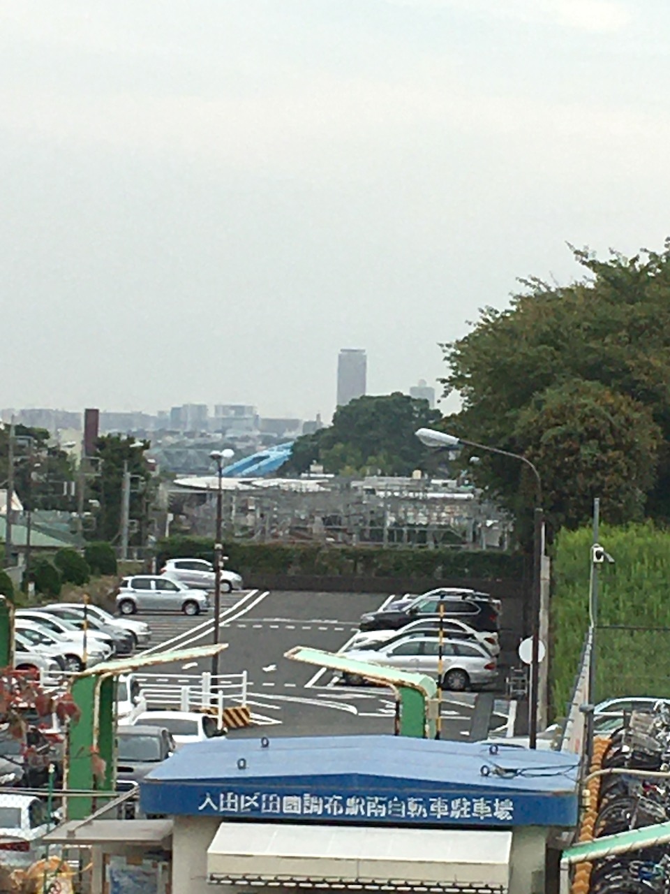 本館西側の屋上にテラスがあり、遠くに鹿島田方面の高層ビルが見えました。