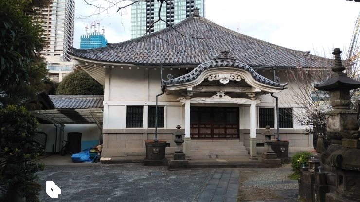 麻布十番駅から徒歩8分くらいのところにある寺院。創建年代は不明だが、江戸時代前期との説がある。また、1700年に現在地に移転した。