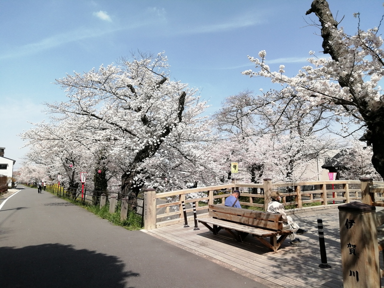 岡崎公園での桜まつりはご存知の方も多いと思いますが、伊賀川沿いの一部も桜まつりの会場となっていることは知らない方いるのではないでしょうか。場所は石神橋から稲熊橋の間。夜間はライトアップもされます。特に雰囲気のよいのが「さくらこはし」周辺。やはり木造の橋と桜はよく似合います。観光客の姿は少なく、周辺の地元の方々が散歩がてらやって来るのんびりした感じがとてもいいです。ここも