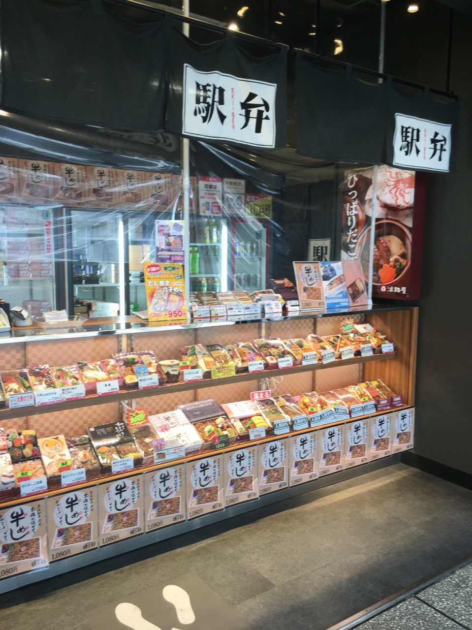 京都駅構内のコンコース沿いにあり2.3番線ホーム上付近にあります。数メートル歩いたところにも同じ店がありました。ディスプレイにはカラフルな弁当の写真が並んでいましたが朝に行ったため入荷待ちの商品もいくつかありました。キャンペーンで宣伝していた出し巻き穴子めしは穴子がボリュームあり玉子も旨かったです。