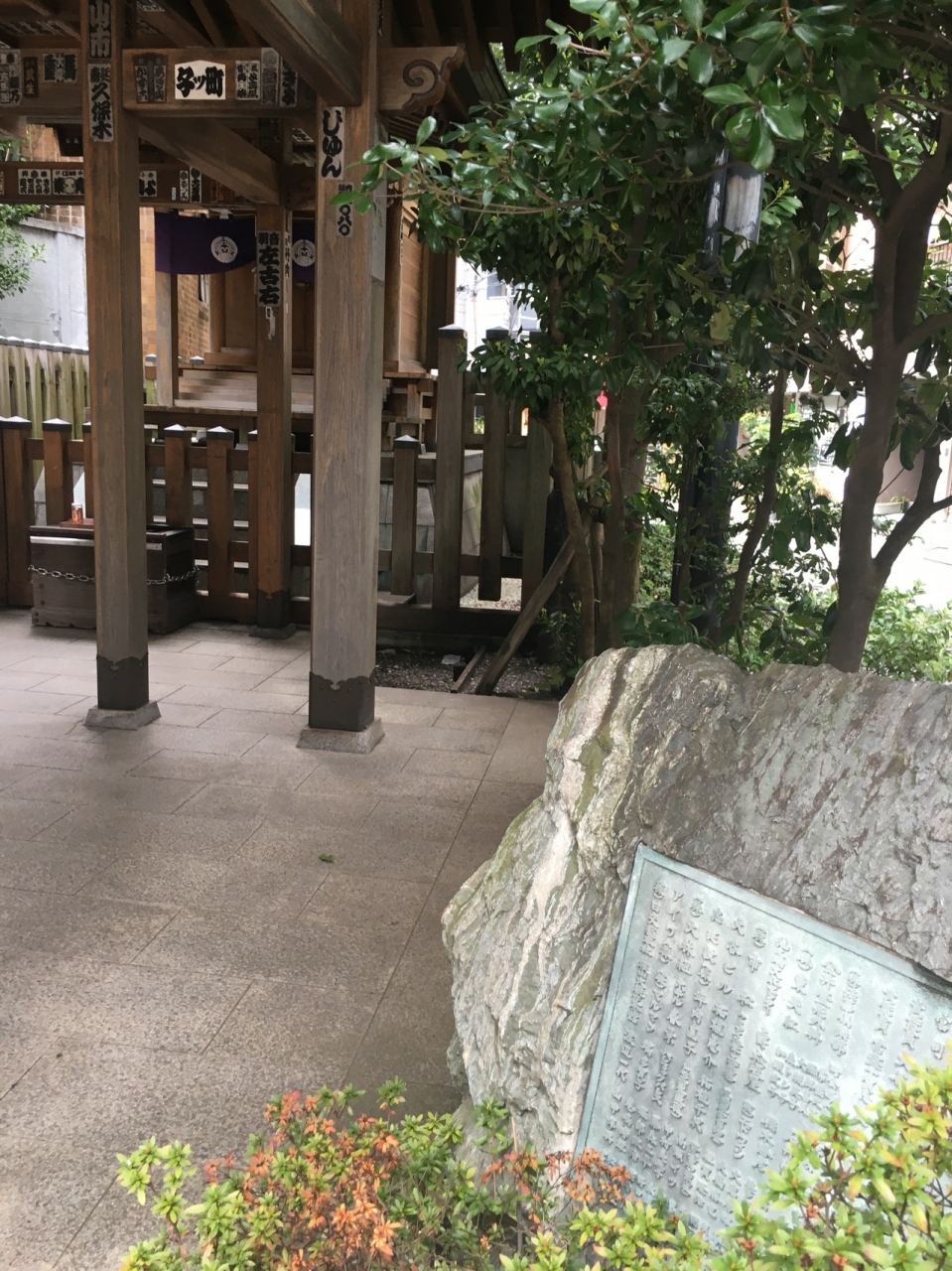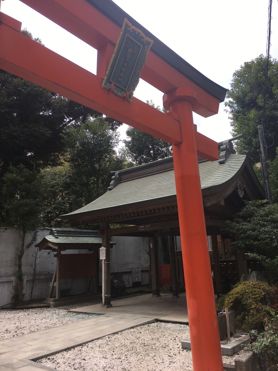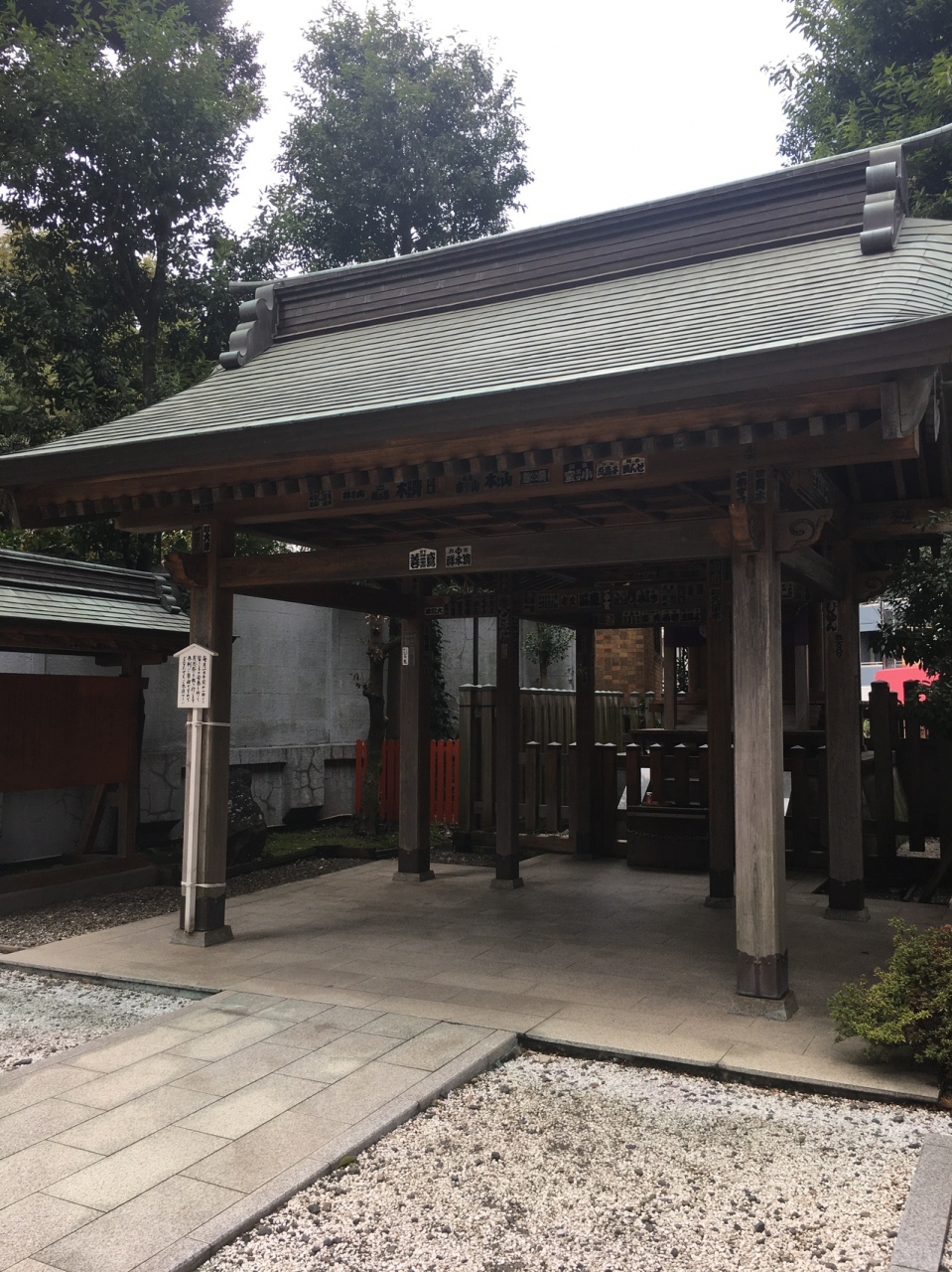 上野恩賜公園の不忍の池から近い場所にあり幹線道路から一本逸れているせいか人がいませんでした。赤い鳥居を潜ると右側にはからのような建物があり、その前に場所屋根がある場所があって空間になっています。小さな境内で木の温もりを感じる神社でした。