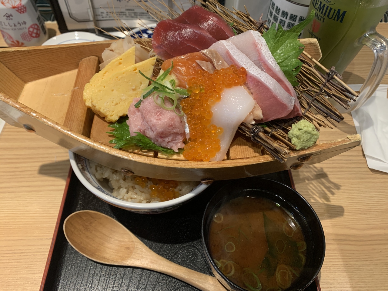 舟盛り丼990円と緑茶ハイ329円をいただきました。
