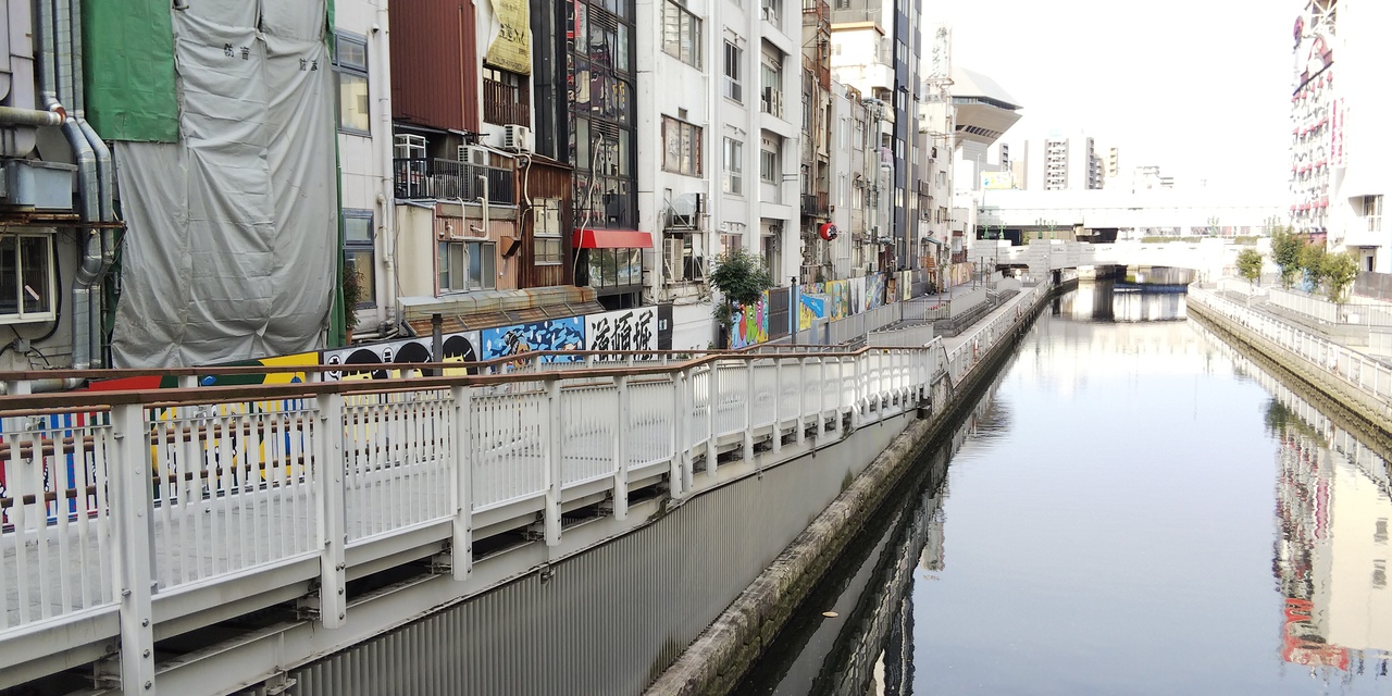 道頓堀川は大阪・ミナミを東西に流れる川です。市内を北から流れる東横堀川が、南向きから西向きに変わるところで、川の名称も道頓堀川に変わります。普段は賑やかな戎橋のほうを通りますが、久しぶりに新戎橋のほうを通りました。朝は閑散としていました。