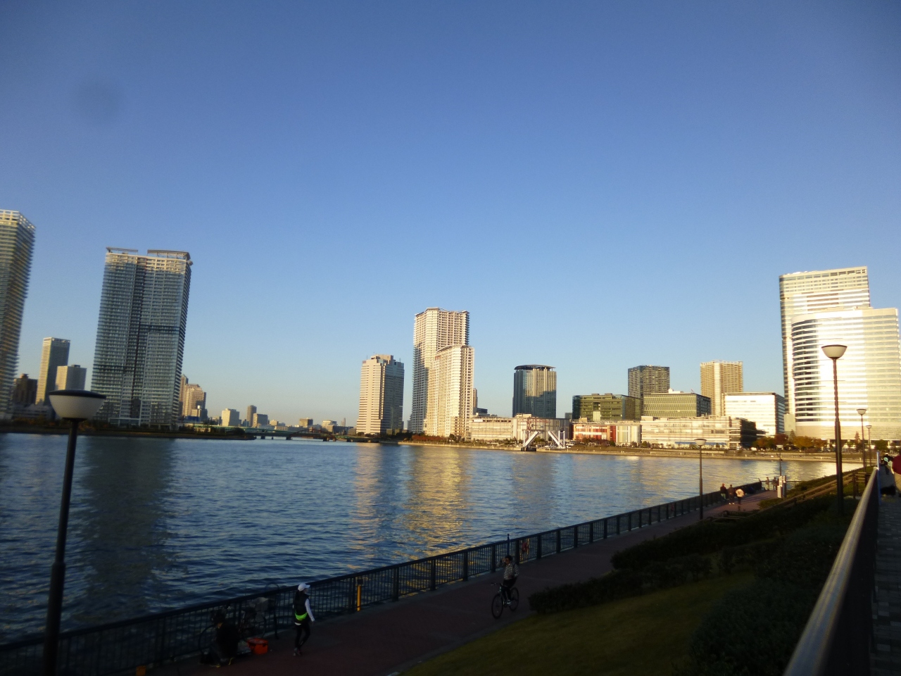 豊洲エリアの再開発の伴い造られた公園で、水辺に沿って細長い形をしており、晴海や豊洲の光景を一望できます。正面に見える晴海大橋の姿はダイナミックで、更にその向こうにはレインボーブリッジの姿も見えます。晴れた日の夕景や、夜景の鑑賞もおすすめです。