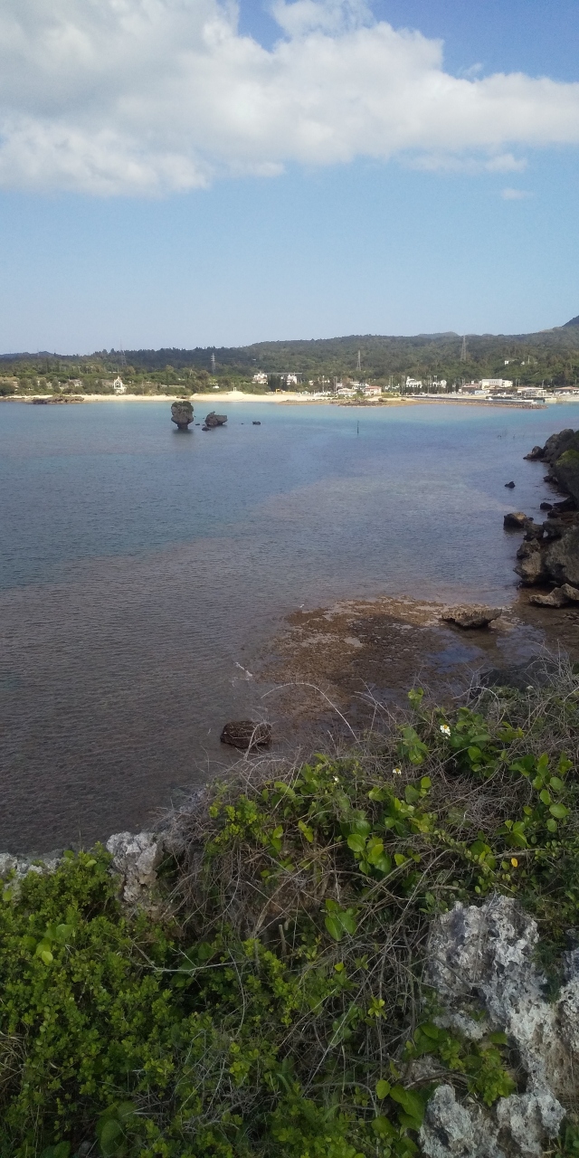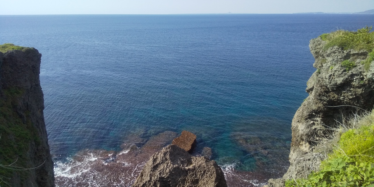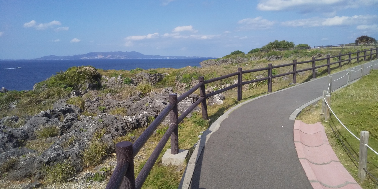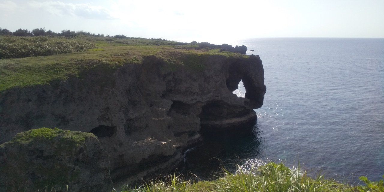 沖縄の観光名勝地として有名な恩納村にある万座毛。石灰岩で出来た高さ20メートルの高台からは、コバルトブルーの海が眼下に広がる壮大な景色が楽しめます。