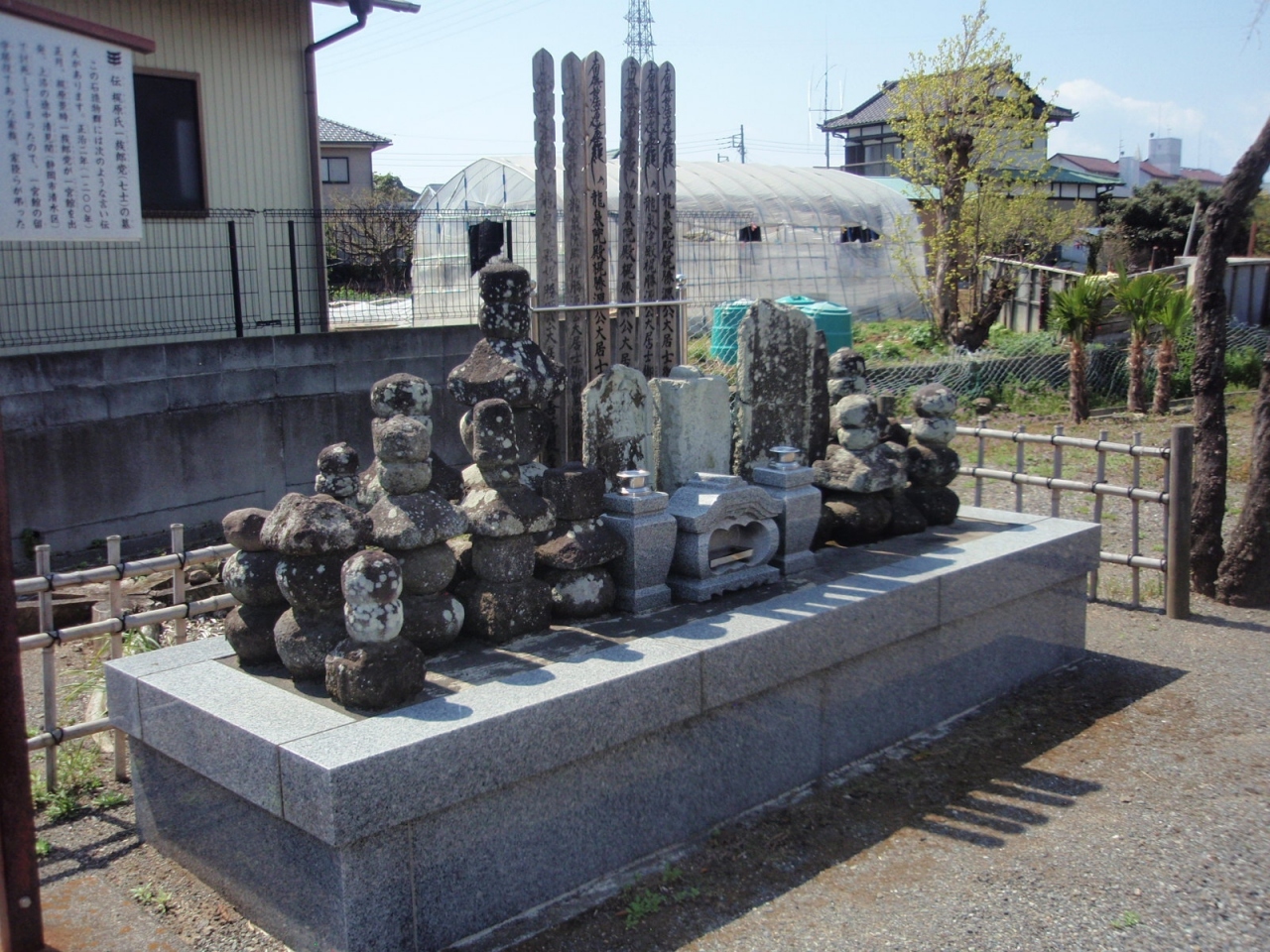 築城主は梶原景時、築城年は不詳、鎌倉時代です。天満宮が建っている辺りが館跡といわれています。館跡の遺構は見られませんが、梶原氏一族の墓の後ろにある水路は内堀跡、ここから北西に行った住宅地に土塁跡らしきものが見られます。館跡には天満宮社殿、梶原景時館跡標柱、梶原氏一族郎党の墓等があります。教養もある武将景時は頼朝に重用されますが頼朝死後、他の頼朝家臣との政争に敗れ、ここ寒川に退いた後、上洛途中討ち死にする。文武両道の武将(石橋山合戦時は平家方)で且つ、石橋山合戦で敵方(源氏方)の頼朝を助けた景時も不運な人ですね