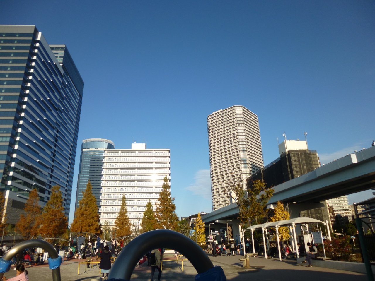 「豊洲ぐるり公園」(豊洲ふ頭内公園)とは、豊洲ふ頭にある豊洲公園、豊洲六丁目公園、豊洲六丁目第二公園、豊洲ぐるり公園の4つの公園の総称です。中でも有明駅やららぽーとに近い「豊洲公園」は、近所にお住いの家族と見られる小さなお子さんづれの姿も多く、活気あふれる光景でした。