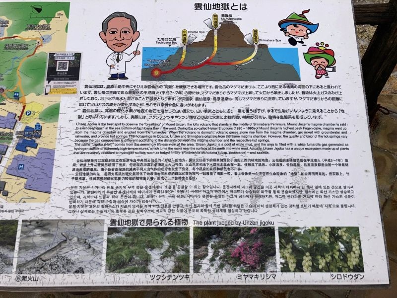 地獄と呼ばれる湯煙が噴出するところにへは初めての訪問。雲仙九州ホテルの方から入口に向かって、道路沿いを歩いて行くと歩道も湯煙で向こうが見えない状態。すごいです。