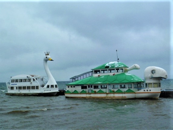 猪苗代湖遊覧船;親子のカメ丸/はくちょう丸