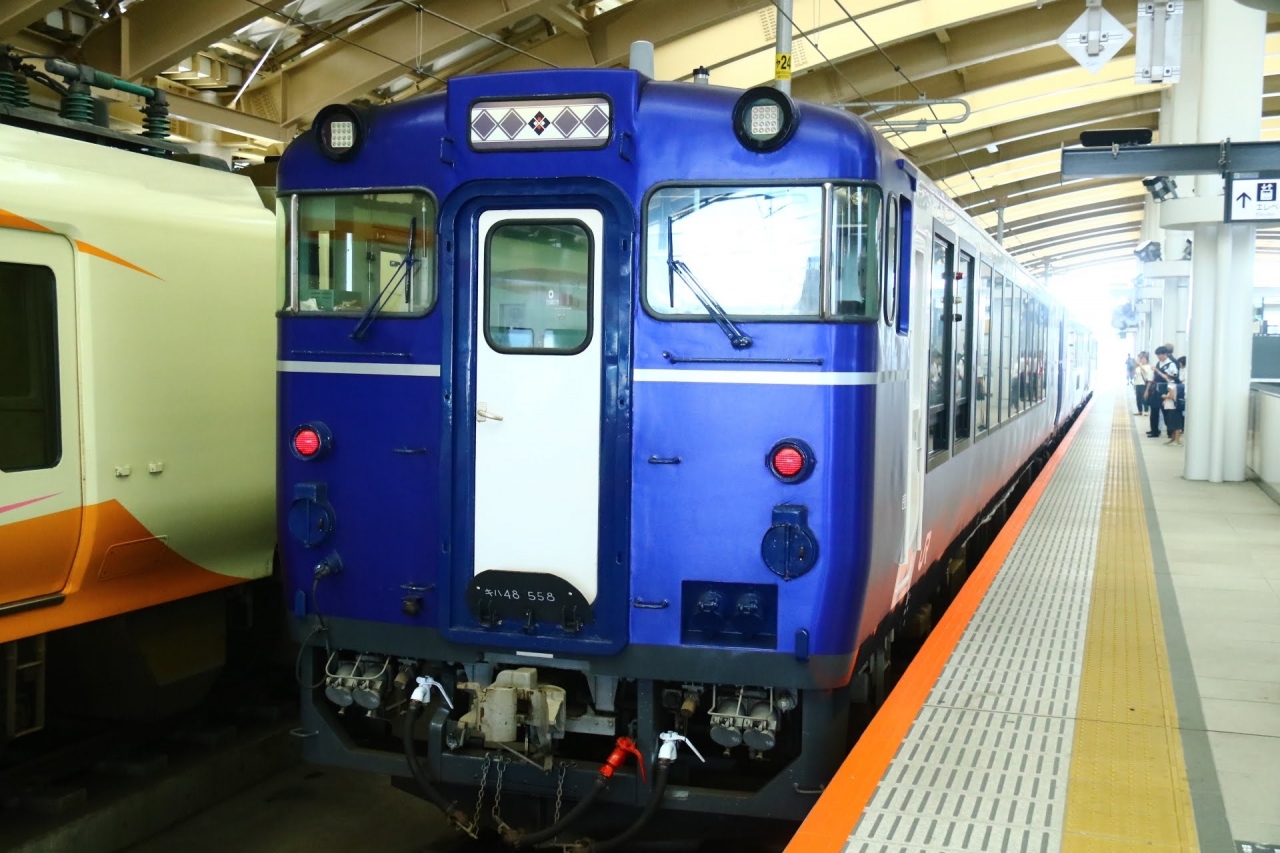 日本酒をテーマとした観光列車です。車内ではジャズの生演奏があったり、オリジナルのものを含めた日本酒やおつまみを楽しむことができます。売っていた鮭の焼き漬けがとても美味しかったです。なお、運転日により運転される区間が違うので注意が必要です。