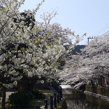 通り自体は大谿川という川に沿っているのですが、2022年4月10日現在、通り沿いに桜が咲いていて綺麗でした。