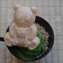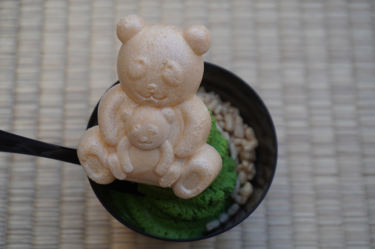 雷一茶は、伝法院通りと言っても仲見世の東側。観光地らしいお店のひとつといった感じ。クマさんの抹茶アイスをいただきました。あんまり期待はしていなかったのですが、抹茶の香りがしっかりするし、小さなあられがちゃんとアクセントになっていて、とっても素直なおいしさ。腰掛に座って寛ぐのもいい感じです。