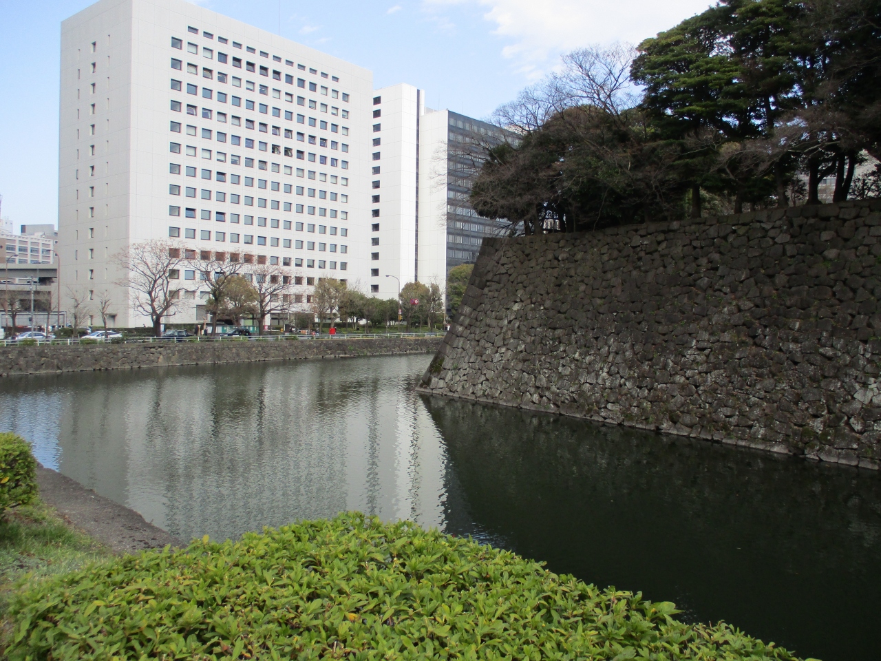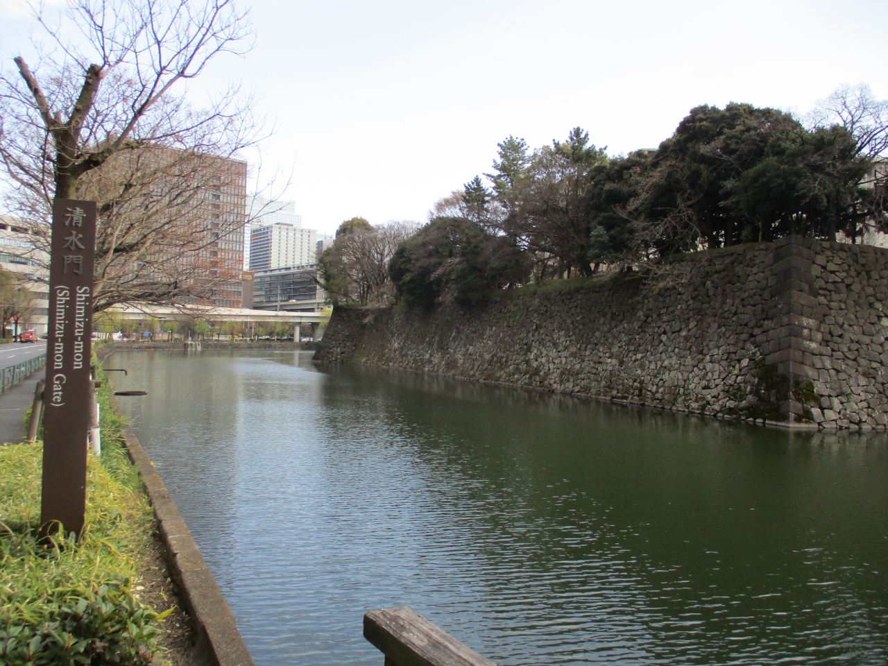 内堀通り沿いを散歩をしていて、清水門近くのお堀を眺めました。濠の幅も広くて水も多く、さすが江戸城のお堀だと感心しました。石垣が湖面に映って、とてもきれいでしった。ゆったりと皇居のお堀を眺めるとしたら、最適な場所だと思いました。