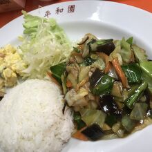 八宝菜、揚げ餃子、ポテ卵