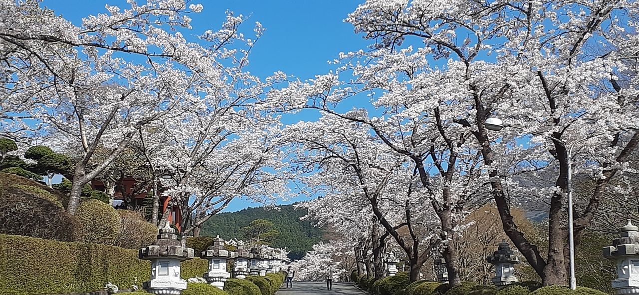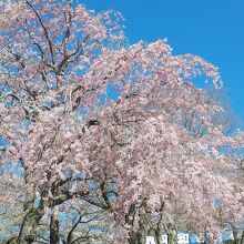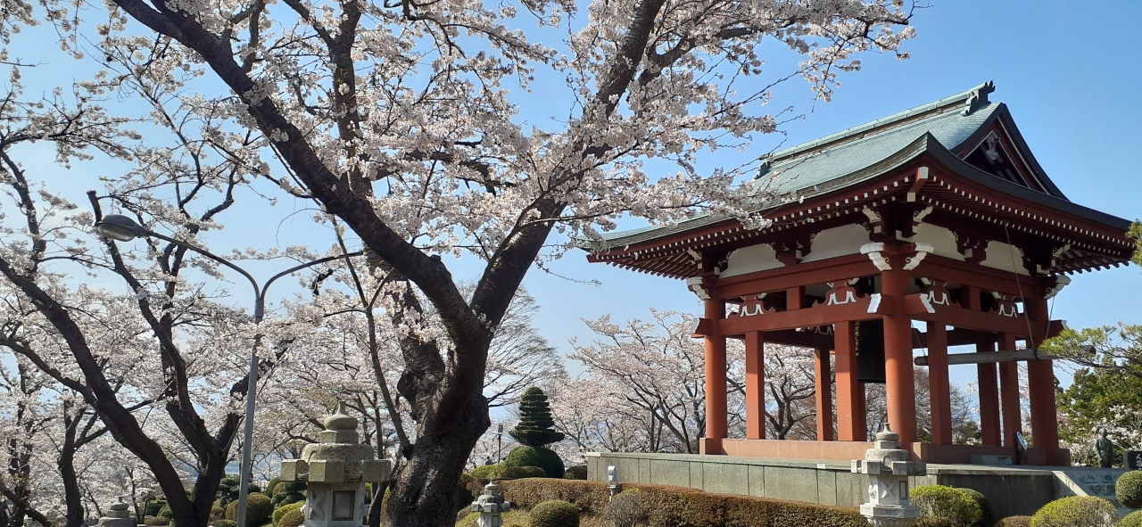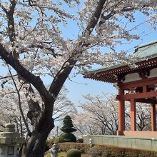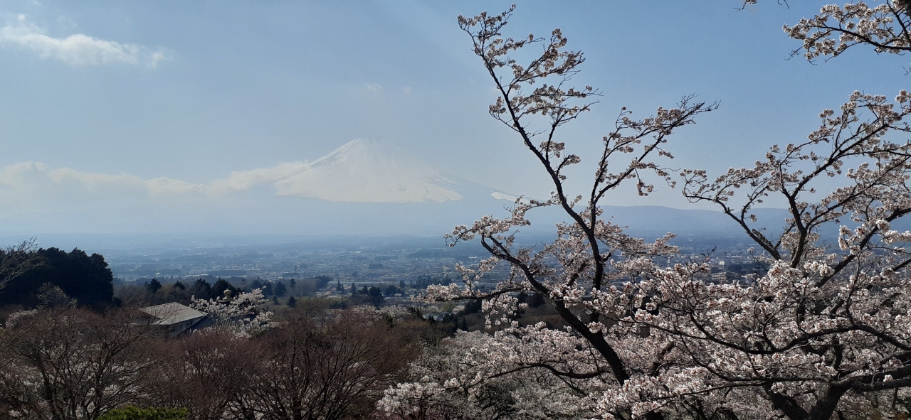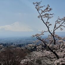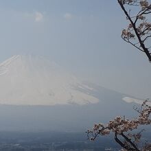 簡素な展望台があり、雪化粧の「白い」富士山と桜のコラボがみられます。