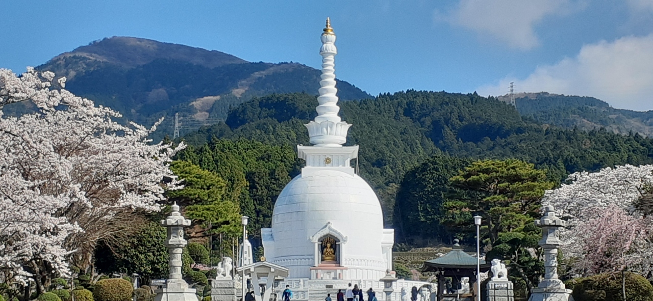 白くて大きな仏舎利塔などがあり、ここは寺院のようです。