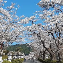 雪化粧の「白い」富士山と桜のコラボがみられる場所です