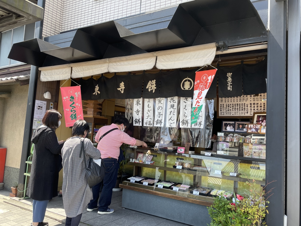 創業1912年、世界遺産・東寺御用達の老舗和菓子店です。東寺 慶賀門(東門)北側、バス停前にあります。桜のお花見で東寺を訪れた際、沢山の方が訪れているのを見て立ち寄りました。店名にもなっている代表銘菓の東寺餅と、桜餅を購入しました。とても柔らかく、家に持ち帰ると残念ながら少し形が崩れていました。少し小ぶりサイズですがお値段もお手頃、あんもなめらかで上品なお味でした。