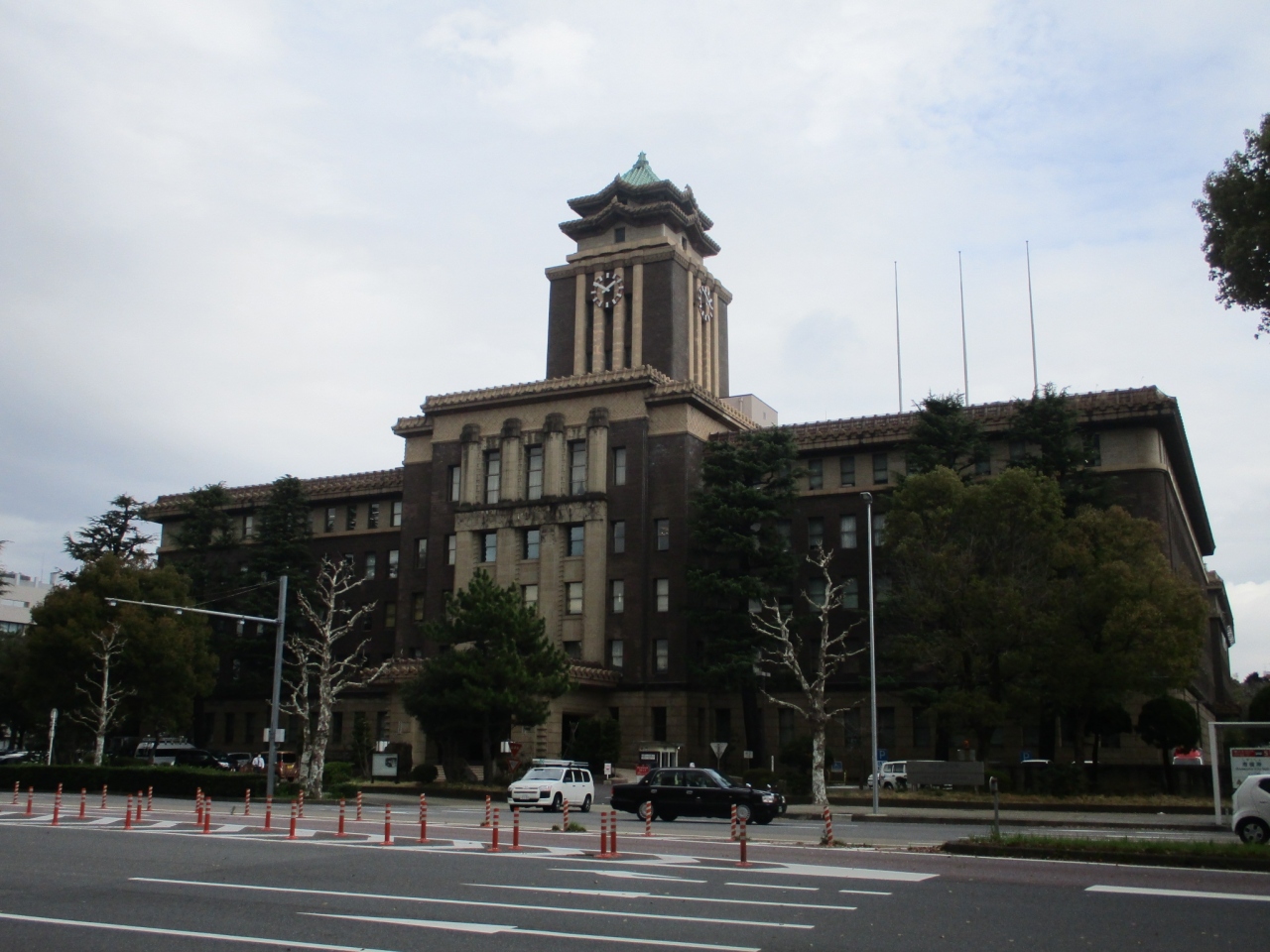 名古屋城の南側は裁判所、警察本部、税務署、県庁などが集まる官公庁街です。名古屋市役所は名古屋城の東南側、大津通沿いに建っています。初めて見たのですが大きくて、建物の中央に時計塔があってレトロ。昭和8年に建てられたそうです。素敵な市役所だなと思いました。