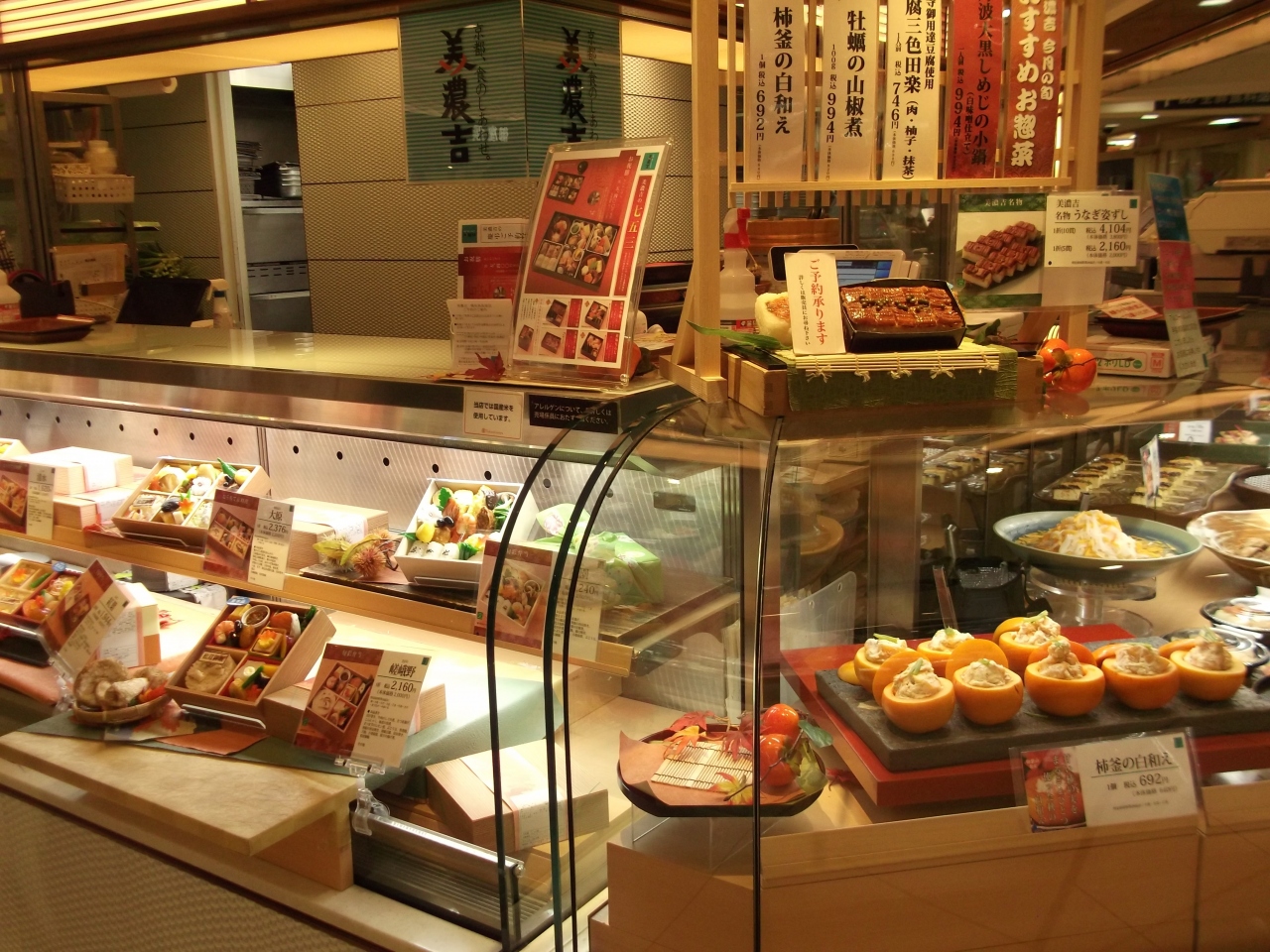 横浜駅西口隣接の高島屋地下食料品店街にある和食惣菜のショップです。牡蠣の山椒煮、柿釜の白和え、豆腐田楽、といったいかにも京都らしい惣菜が並んでいました。値段はどれもそれなりにしますが、見た目も美しいので料理を目でも楽しめました。