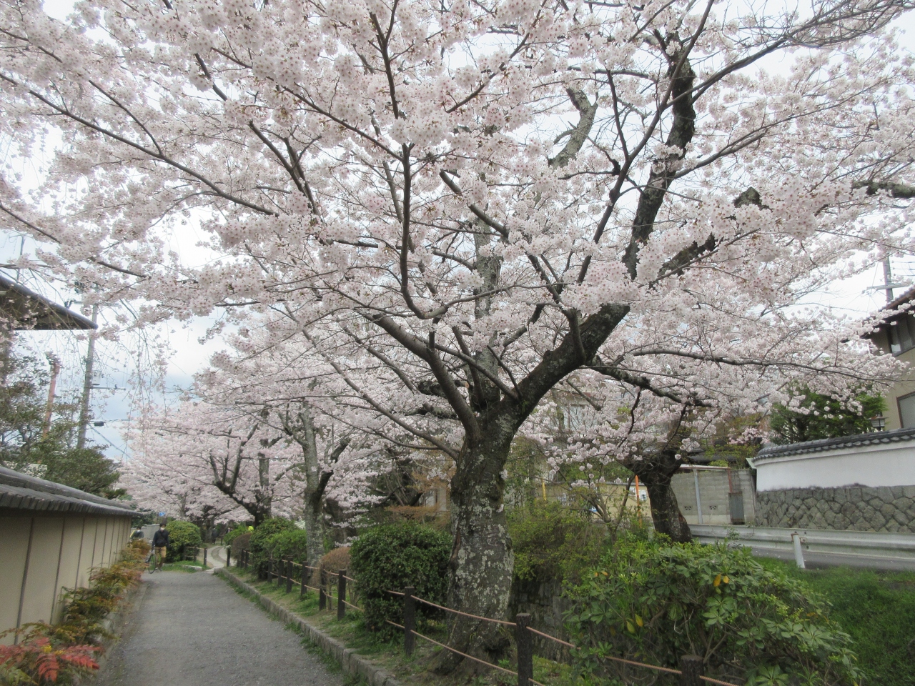 秋の紅葉や春の桜の名所として知られる散歩道です。銀閣寺周辺から熊野若王子神社まで続く2kmほどの小径で、道沿いには琵琶湖疏水から分かれた小川が流れていて、車が通れないためとても趣きがあります。桜の季節には川に架かるいくつもの橋から、川にせり出した桜の写真を撮る人が多く見られます。哲学の道から歩いて数分のところには、庭園や紅葉が美しい寺や天皇櫻本陵などもあり、寄り道するのも面白いです。今回は熊野若王子神社方向から銀閣寺方向に歩きましたが、朝は人通りが少なく静かだったにもかかわらず、10時半を過ぎたころには銀閣寺の見学を終えた観光客が多く訪れ賑やかになってしまいました。趣ある静かな景観を楽しみたい方は、早めの散策がおすすめです。