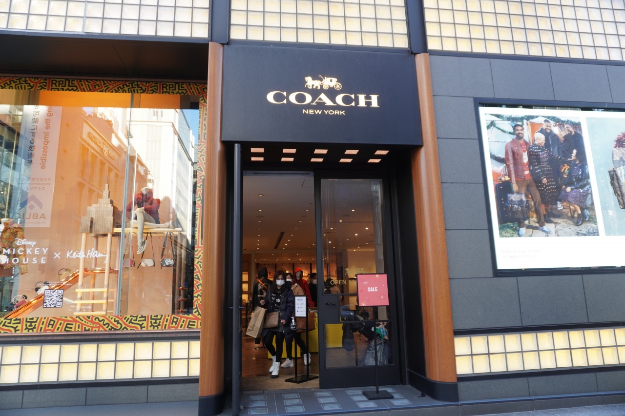 コーチ銀座は、銀座の晴海通り沿い。コーチはブランドといっても女子高生が持ったりもできる身近なブランドというイメージですが、銀座のこのお店は入り靴の感じとかから始まってさすがに重厚感がありますね。コロナ禍ということもあってか入店制限があって、少し行列ができていました。