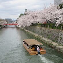 桜の季節、琵琶湖疏水の一部、岡崎疎疏水を使用して十石舟が運行されます。30人ほどが乗れる小舟を船頭さんが操る中、ガイドさんの説明を聞きながら、25分ほど桜を観賞するのんびり舟旅を楽しむことができます。人気の桜巡りで、チケットはウェブで事前予約するか、当日8時半から販売するその日一日分のチケットを購入するかどちらかです。桜を舟から見上げられるのは面白かったですが、決められた時間に乗船しなければならず、行動が制約されたのが残念です。