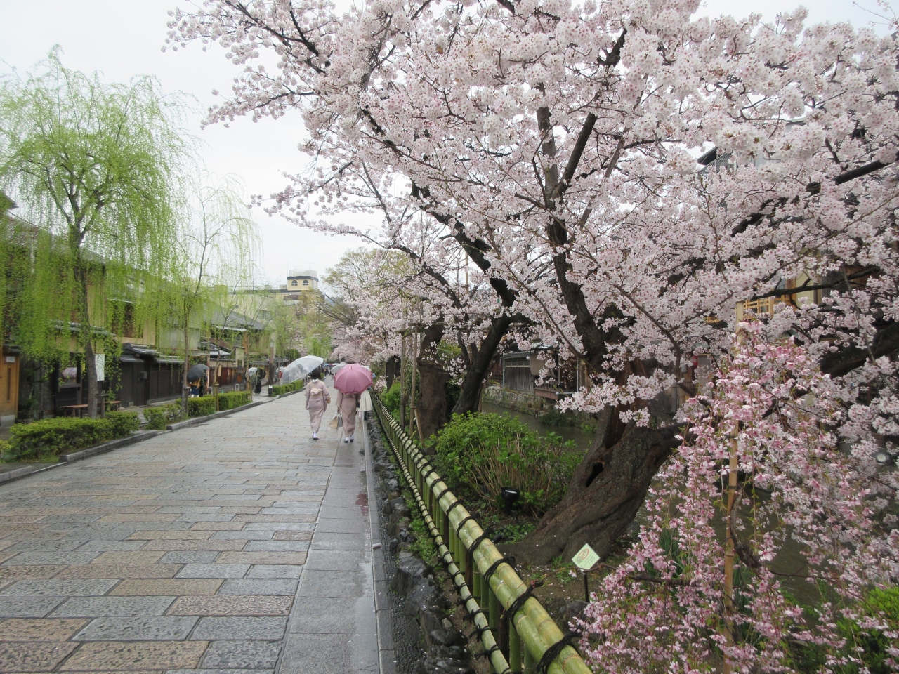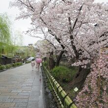 石畳が敷かれ、道沿いには桜や柳が植えられ、白川沿いに建つ格子戸の料亭やお茶屋など、京都でも最も京都らしさが感じられるエリアです。白川に架かる朱色の巽橋や、芸妓さんや舞妓さんが芸の上達を祈願しに訪れる辰巳大明神は、観光雑誌の表紙やポスターにしばしば登場しています。京都に桜満開宣言がでてから4日目に訪れたところ、一部散りかけていてそれほど感動的ではありませんでしたが、白川沿いの京都らしい景観に心が落ち着きました。