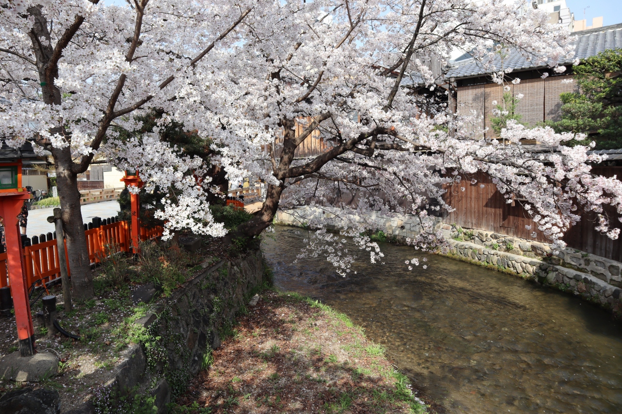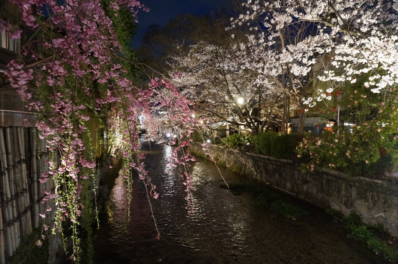 祇園白川あたりは、町家が連なり、白川が流れ、石畳の道が続いています。