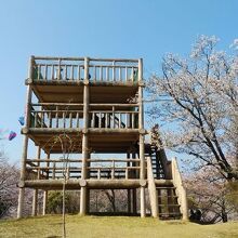 園内のいたるところに桜が植栽されており、満開時は斜面に咲く桜がきれいだった。また、展望台からも満開の桜の広がりを堪能することができた。暑い日が続き、散りはじめが早かったが、ぎりぎり鑑賞できるレベルの桜を見ることができた。
