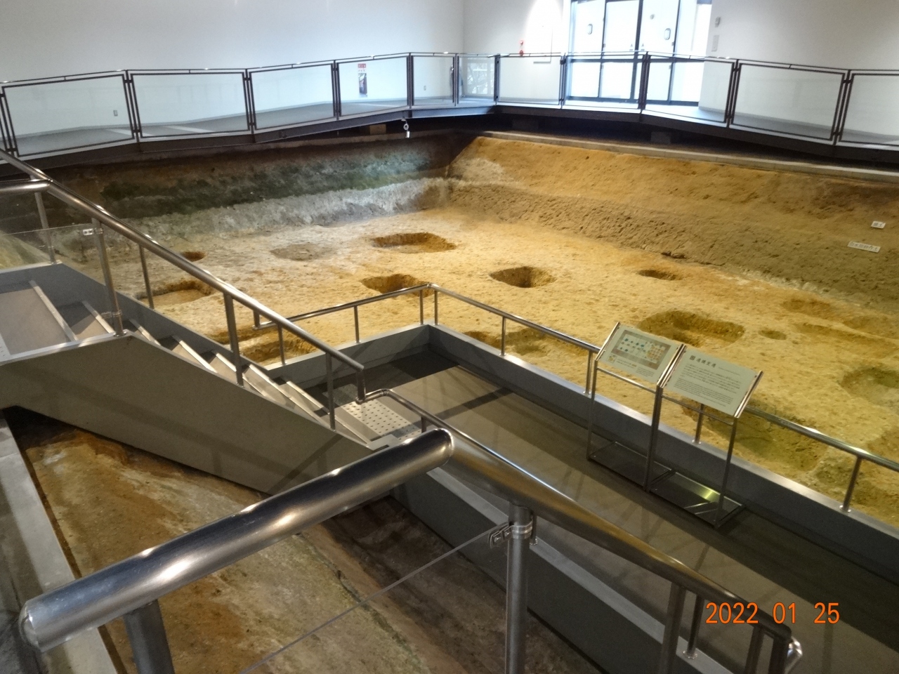 自転車で風が強い中を走って寒かったので、ここで椅子に座って休憩しながら遺構を観察しました。まだ、真新しい施設なのでしょうか? どこもピカピカでした。
