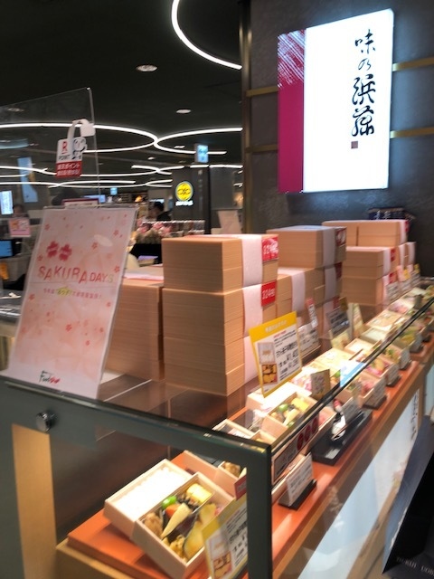 桐箱風の入れ物に詰まった、よそ行きのお上品なお弁当が並びます。