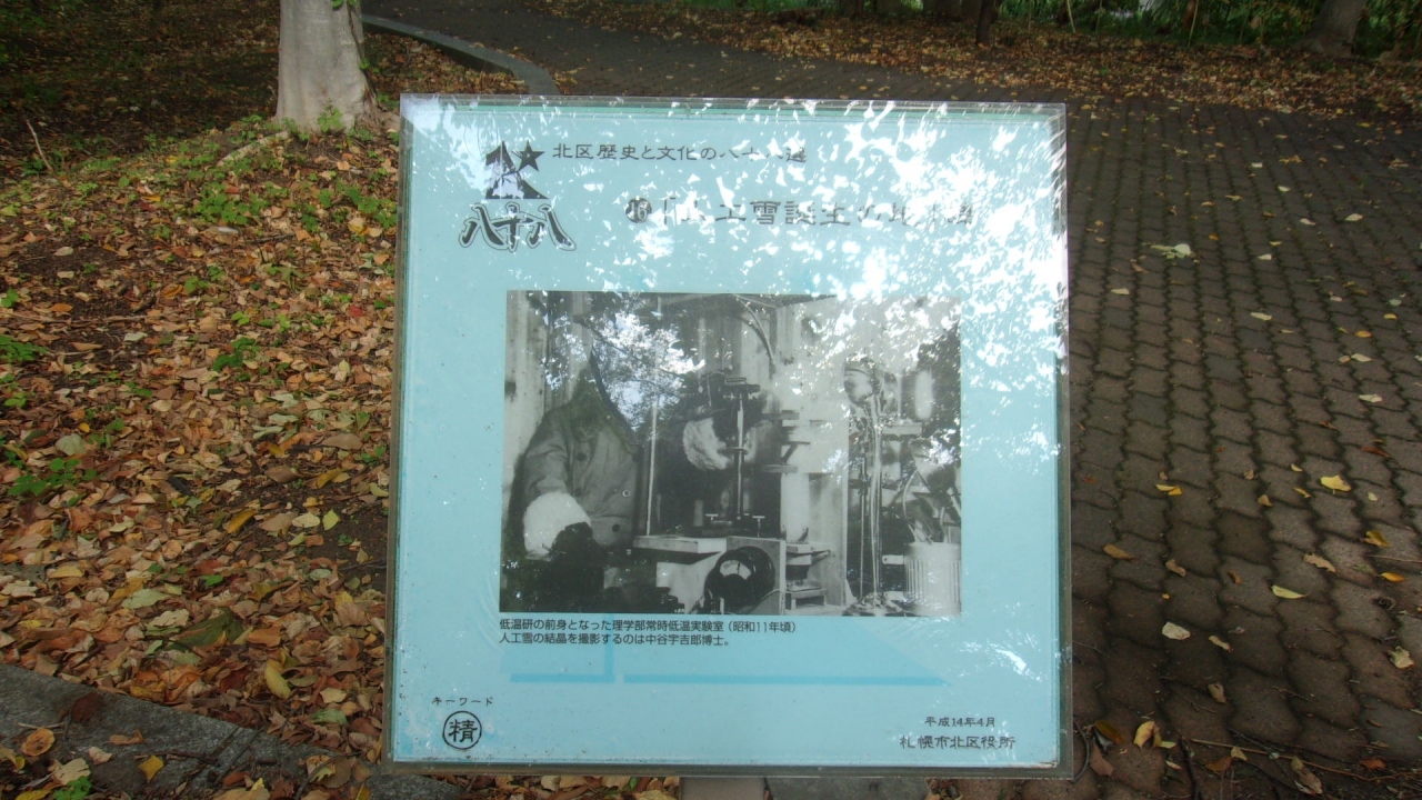 六角形の地味な石碑だが、この石碑の姿からは、寒さの中での忍耐強い地味な研究の成果を感じさせる。