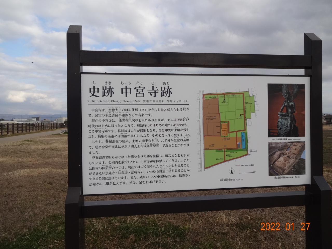 法隆寺と法起寺、法輪寺の塔が見えるという場所がありました。