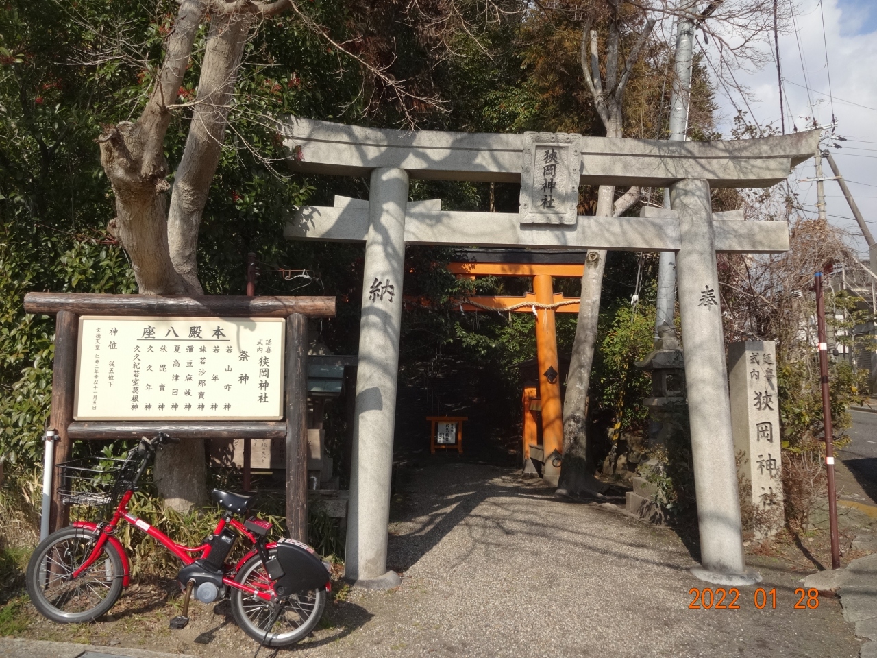 白い石の鳥居の奥に朱色の鳥居がありました。白い鳥居のそばに自転車を停めて、なだらかな階段を登って行きました。