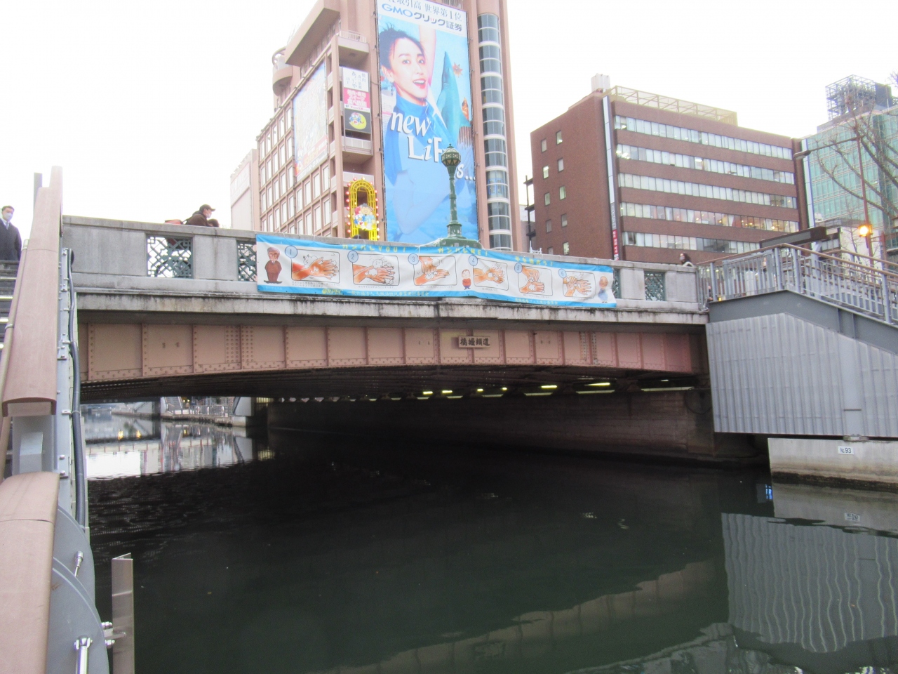 同じく御堂筋の拡幅に伴って架け替えられた国の重要文化財にも指定されている大江橋や淀屋橋のような姿見や景観の良さがなく、川幅の狭い道頓堀川に架かっているシンプルな橋です。